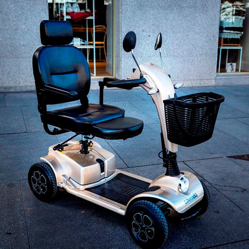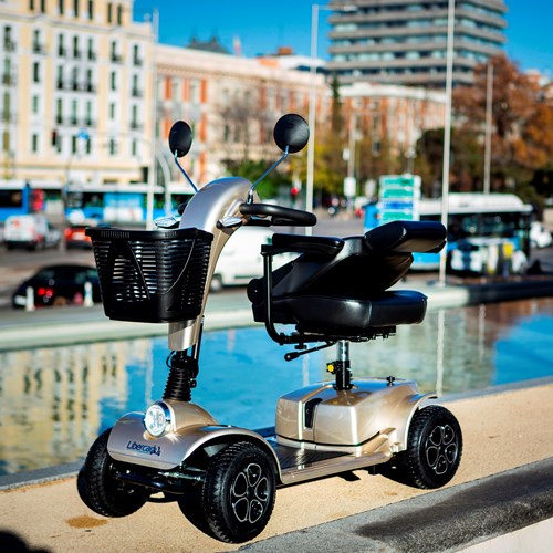 This 118 cm scooter is between the Libercar Urban model and the Libercar Grand Classe. This is a high-performance scooter but with a compact size that helps with easy storage and transport. The scooter has a 350W motor - 2x32Ah batteries, a top speed of 10 km/h and a range of 33 km.